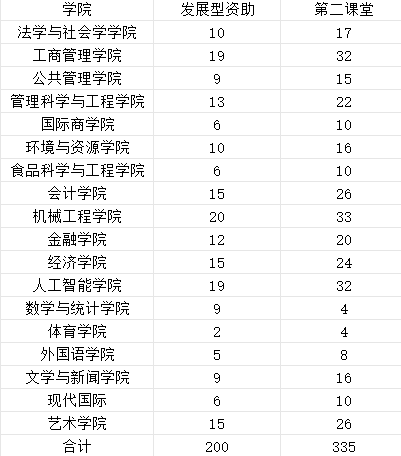 当前位置: 首页 >> 学生资助 >> 正文 关于开展2025年“翠湖春雨”资助项目申报工作的通知 时间:2025年11月06日 16:04 作者: 饶俊妮 各学院: 为更好地提高家庭经济困难学生的综合素质,促进学生全面发展,根据《重庆工商大学“翠湖春雨”资助项目实施办法》规定,拟开展重庆工商大学2025年“翠湖春雨”资助项目申报工作。现将有关事项通知如下: 一、项目申报条件 1.项目申请类(发展型资助项目) (1)项目申请人(负责人),必须是本学年学校认定的家庭经济困难学生,由学生自己组织团队申请,团队参与者3-5人,其中,每个团队最多只能有2名非家庭经济困难学生,可以跨年级、跨专业合作,已通过其他途径获得资助的项目不得重复申报。 (2)项目内容,要与学业提升、就业创业、科技创新、素质拓展、志愿服务、社会实践、社会调查、公益服务以及其他类项目等有关,项目形式可以是课题、竞赛、活动等。 (3)项目要求,申请项目以提高学生综合素质为前提,切实解决实际问题,思路新颖、目标明确、具有实践性和可操作性,学生要对项目方案及可行性进行分析,并在实施过程中不断调整优化,能够在项目预定期限内完成。 (4)指导教师,每个项目配备指导教师1名,指导教师原则上应具备完成相应项目的指导能力和水平,责任心强、热心学生工作。 (5)2024年发展型资助项目不合格者不得继续申报2025年项目。 2.第二课堂类 (1)项目申请人,必须是本学年学校认定的家庭经济困难学生,且以个人方式申报,申请人必须是项目的组织者或发起者。 (2)项目内容,原则上(特殊情形下,可以不受限于三次),“第二课堂”资助项目以组织开展不低于三次活动为主要内容,活动主题包括发展特长、增加学识、培养能力、陶冶情操等方面的交流与实践活动。 (3)项目要求,申请项目应贴合学生成长发展需求,具有广泛的参与性,参与活动人数不少于10人。 (4)指导教师,每个项目配备指导教师1名,指导教师应根据申请学生实际情况认真审核项目实施的必要性和可行性,并对项目的开展提出指导性意见。 二、立项程序和时间安排 1.学生申请 各学院认真组织学生申报“翠湖春雨”资助项目。申请人根据申请项目类型完成相应的申报书(《重庆工商大学学生发展型资助项目申报书》或者《重庆工商大学“第二课堂”项目申报书》)。 2.项目评审 为保证项目的育人效果,评审工作坚持“择优立项”的原则,各学院要严格审核申报项目的立项价值和经费预算,合理确定项目资助经费,每个学院推荐立项的项目数量不超过学校分配的立项名额(见下表),立项评审实行校、院两级评审制。学院对本院申请项目进行审核并按照申报质量进行排序,学校再进行最终评审确定拟立项名单。 3.项目开展时间 每学年开展一次,学年末进行结题。 三、项目实施和管理 学院要切实做好学生项目的管理,指导教师定期对项目进展情况进行督促检查,对不能按计划开展实施的项目要及时予以终止,并报学生处备案。 四、经费资助 1.经费来源。“翠湖春雨”资助项目经费来源于学生资助专项经费。 2.资助标准。发展型资助项目每项资助1000元-2500元,第二课堂项目每项资助200元-600元,资助经费分两次发放,发展型资助项目立项后发放首款500元,第二课堂项目立项后首款发放资助经费的50%,剩余尾款待项目结题后统一拨付,项目资助经费全部用于学生项目实施的必要开支,指导教师不得使用学生项目经费。 五、材料报送 各学院与11月18日前将相关的申报材料纸质版报学生资助管理中心,电子版材料发送给学生资助管理中心杨华俊老师。 六、工作要求 1.广泛宣传,认真组织。“翠湖春雨”资助项目是在充分满足全校学生特别是家庭经济困难学生保障性需要的前提下,为促进学生成长成才,满足学生长远发展需求而设立的专项资助。各学院要广泛宣传,认真组织学生申请申报。 2.加强领导,规范程序。学院要制定本学院“翠湖春雨”资助项目的实施方法,明确申报立项、项目指导、中期检查、结题验收等管理细则,在指导小组的统一领导下,规范开展学生“翠湖春雨”资助工作。 3.严格要求,加强监督。学校设立监督电话(62768118)和监督信箱( ctbuzzb@ctbu.edu.cn ),确保 “翠湖春雨”资助 工作的有效进行。对于学生反映的问题,如果调查属实,追究有关当事人的责任。学院也要公布监督电话和监督信箱,及时妥善处理学生反映的各类问题。 附件1:重庆工商大学学生发展型资助项目申报书 附件2:重庆工商大学“第二课堂”项目申报书 附件3:重庆工商大学2025年“翠湖春雨”资助项目汇总表 附件4:重庆工商大学2025年“翠湖春雨”发展型资助项目参考目录 学 生 处 2025年11月6日 附件【附件1:重庆工商大学学生发展型资助项目申报书.docx】已下载次 附件【附件2:重庆工商大学学生第二课堂资助项目申报书.docx】已下载次 附件【附件3:重庆工商大学2025年“翠湖春雨”资助项目汇总表.xlsx】已下载次 附件【附件4:发展型资助项目题目参考20251016.xlsx】已下载次 下一条:生源地助学贷款全额保障您的大学学费 【关闭】