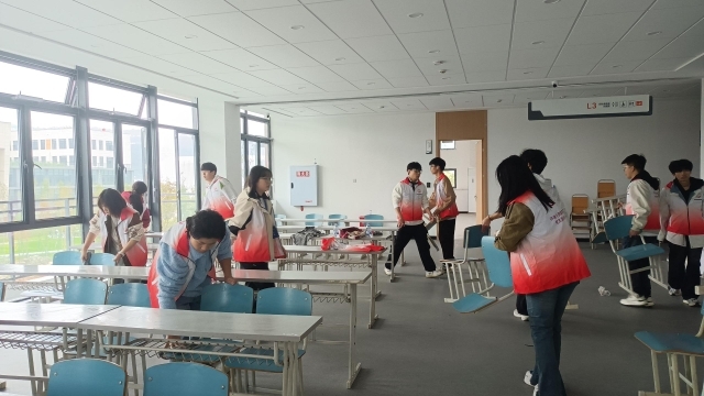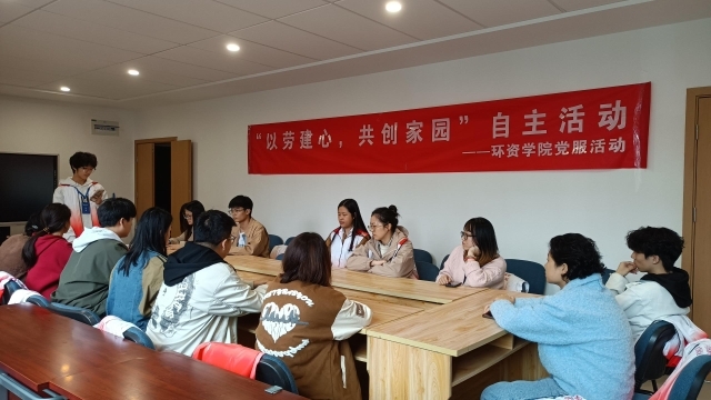当前位置: 首页 >> 社区建设 >> 正文 环境与资源学院开展“以劳建心,共创家园”劳动实践活动 时间:2025年11月01日 16:01 作者: 环境与资源学院 为深入贯彻落实立德树人根本任务,扎实推进劳动教育,2025年10月31日,环境与资源学院党员服务站在茶园校区润智楼组织开展了“以劳建心,共创家园”主题实践活动。本次活动旨在通过集体劳动锻炼学生意志品格,增强学生校园归属感,共同营造整洁、文明的学习环境。 活动前期,学院党员服务站周密策划,制定了详细工作方案。通过线上排班系统,同学们被科学划分为多个小组,分别负责不同楼层与区域的清扫任务,内容涵盖地面清洁、桌椅擦拭、窗户除尘及自习室打造等环节。同时,现场设有工具管理、签到登记等岗位,确保流程有序、责任到人。 尽管天气微寒,同学们仍精神饱满,准时集结。在劳动过程中,大家分工协作、默契配合:教室内的同学细致清理每个角落,走廊与窗边的同学认真擦拭,不留死角。整个活动现场秩序井然,同学们在劳动中展现出良好的综合素质与团结协作精神。 经过近两小时的共同努力,润智楼内原本蒙尘的教室与会议室焕然一新,环境整洁明亮。活动结束后,各小组统一归整清洁工具并汇报完成情况,全体参与人员在楼前合影,为这次富有意义的集体劳动留下珍贵记忆。 此次实践活动不仅切实改善了新校区的教学科研环境,也进一步强化了同学们的劳动观念、集体意识和爱校情怀。环境与资源学院将持续拓展劳动教育的形式与内涵,引导广大学子在实践中成长,在劳动中筑梦,共同建设更加和谐、美丽的校园家园。 上一条:会计学院“一站式”学生社区举办2025年民族学生代表座谈会 下一条:环境与资源学院党员服务站举办“铭记抗战历史,书写复兴担当”主题活动 【关闭】