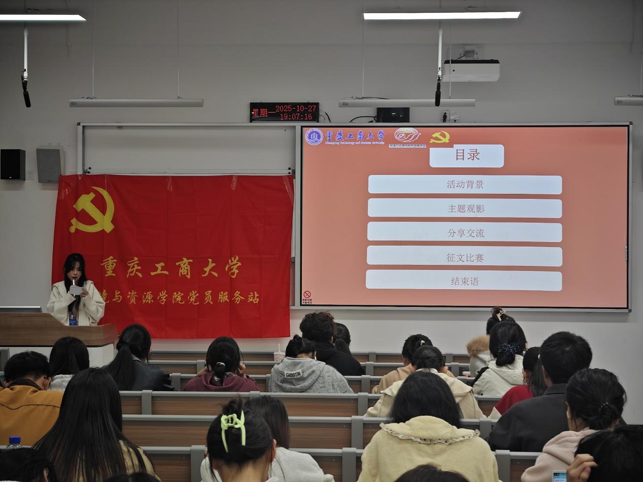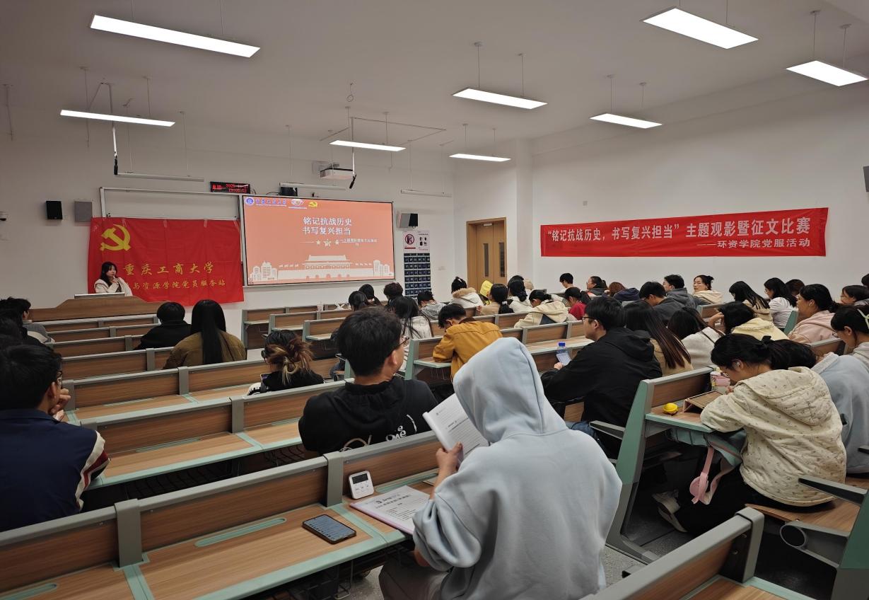 当前位置: 首页 >> 社区建设 >> 正文 环境与资源学院党员服务站举办“铭记抗战历史,书写复兴担当”主题活动 时间:2025年10月28日 16:29 作者: 环境与资源学院党员服务站 2025年10月27日,由环境与资源学院党员服务站主办的“铭记抗战历史,书写复兴担当”主题活动,在我校茶园校区宏智楼222教室顺利开展。 本次活动通过组织观看志愿军主题影片,引导同学们重温抗美援朝战争的艰苦卓绝与志愿军战士的英勇无畏,深切缅怀为国家和民族牺牲的革命先烈,激励青年学子传承红色基因,赓续精神血脉。影片《志愿军:存亡之战》生动展现了志愿军战士不畏强敌、敢于斗争的英雄气概,使同学们在沉浸式观影中深刻体悟伟大抗美援朝精神的时代价值,进一步坚定了爱国信念与使命担当。 活动伊始,主持人围绕活动主题介绍了背景意义与流程安排。随后,全体同学共同观看影片,现场气氛庄重而热烈。影片情节感人至深,不少同学深受触动。观影结束后,大家踊跃分享心得体会,交流对历史与责任的思考。主持人随后介绍了主题征文的具体要求和提交方式,并设置了答疑环节。活动最后在主持人的总结与全体合影中圆满落幕。 十四年烽火征程,警钟长鸣;民族精神薪火相传,复兴在望。通过此次主题活动,同学们更加深刻地认识到,今天的和平与繁荣来之不易,是无数先烈用鲜血与生命铸就。大家纷纷表示,将不忘历史、勇担使命,把爱国情、强国志、报国行融入新时代的奋斗进程中,以青春之我书写民族复兴的崭新篇章。 上一条:环境与资源学院开展“以劳建心,共创家园”劳动实践活动 下一条:赋能社区建设,汇聚学术动能——食品科学与工程学院学术沙龙启动会成功举办 【关闭】