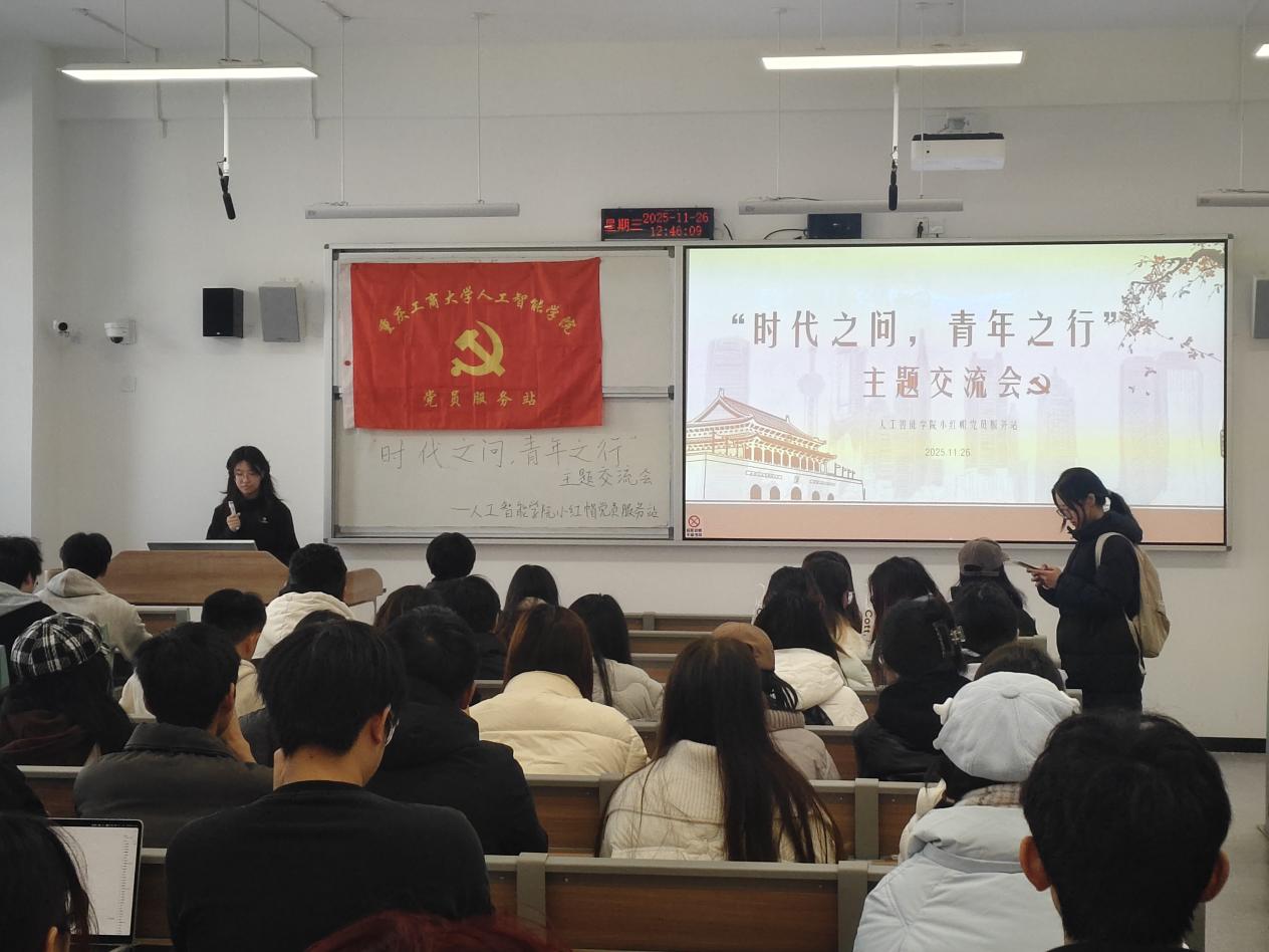 当前位置: 首页 >> 社区建设 >> 正文 人工智能学院小红帽党员服务站举办“时代之问,青春之行”主题交流会 时间:2025年11月27日 11:00 作者: 人工智能学院党员服务站 为引导青年学生从历史长河中汲取奋进力量,在时代征程上明确使命担当,2025年11月26日,人工智能学院小红帽党员服务站举办的“时代之问,青年之行”主题交流会在宏智楼222教室圆满落幕。党员服务站全体成员齐聚一堂,通过历史回溯、互动交流、榜样学习等形式,展开了一场跨越时空的红色思政对话。 活动伊始,主持人张雨柔以“历史、时代、未来”三大维度为脉络,分享王兴兴深耕机器人领域打造民族品牌、宋令东坚守二十载圆梦太空的青年楷模故事,点燃了现场氛围。两位青年榜样在不同领域攻坚克难、逐梦报国的经历,让在场学子深受触动,为后续交流奠定了精神基调。 主题分享与互动环节。围绕五四运动、改革开放、脱贫攻坚三大关键历史节点展开深度探讨。“历史之问”雨课堂抽答、史料解读重温五四精神,引导学生感悟青年在民族觉醒中的先锋作用;“时代之问”通过青藏铁路、入世等影像与互动提问,让学生直观感受改革开放的发展脉搏;“未来之问”立足专业特色,围绕“AI技术回应社会需求”展开讨论,学子从智能助老等方向建言献策,展现了专业青年的创新思维与社会关怀。 活动尾声,主持人发出倡议,号召全体成员做历史的传承人、时代的答卷人、未来的行动者,将历史精神转化为日常信念,把专业优势融入志愿服务与党员建设。此次交流会以创新红色教育形式,将历史解读与专业特色、青年担当相结合,帮助学生理清历史脉络,激发使命意识与行动自觉。未来,党员服务站将持续深耕思政教育创新,推出特色活动以推动红色教育走深走实,引导青年学子在新时代新征程中以青春之我、奋斗之我书写时代答卷。 上一条:“巧手筑暖,温情满舍”——南7、北12楼管会联合开展手工活动 下一条:立报国强国大志向 做挺膺担当奋斗者——会计学院红岩党员服务站举办第八期“阅读悦青春”读书分享会 【关闭】