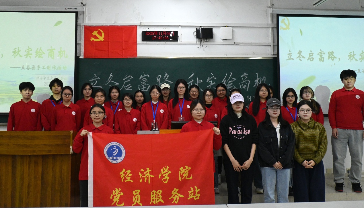当前位置: 首页 >> 社区建设 >> 党员服务站 >> 正文 立冬启富路,秋实绘商机——经济学院党员服务站举办五谷画手工制作活动 时间:2025年11月07日 10:12 作者: 经济学院党员服务站 时值秋冬交替、万物蓄势之季,为深化同学们对国家“激发消费潜能、发展季节经济”战略部署的理解,增强对粮食安全重要性的切身感悟,同时提升创新实践能力与团队协作精神,经济学院党员服务站于2025年11月6日下午,在博智楼07307教室成功举办“立冬启富路,秋实绘商机”——五谷画手工制作活动。本次活动由2024级税收班温乐怡主持,吸引逾60名站员积极参与。 16:30,活动正式拉开帷幕。主持人首先介绍了活动背景与规则,随后全体成员共同观看了《季节经济与粮食安全》主题宣传片。视频从气候变化对农业产出的影响切入,深入剖析粮食安全在国民经济与民生保障中的核心作用,使“季节经济”与“粮食安全”两大主题更加生动可感。 在五谷画创作环节,各小组灵活运用红豆、绿豆、大米等仿真谷物,依据其形态、色泽与质感,围绕“季节经济”“粮食安全”等主题进行艺术创作。同学们在卡纸上描绘二十四节气农事场景,再以谷物拼贴出一幅幅秋收冬藏的生动画卷。这一过程不仅锻炼了创新思维与动手能力,更在协作中强化了团队凝聚力,同时启发大家对农产品审美价值与经济价值融合路径的深入思考。 其中,第一小组以多彩谷物拼贴出中国地图,象征民族团结与盛世繁荣;第四小组创作的“五色玉米”颗粒饱满、色彩斑斓,既展现作物天然之美,亦寄托对物阜民丰的美好期许。随后,各组代表通过深情讲述作品背后的粮食安全故事,或结合季节经济阐释农业发展的时代意义,使每一幅画作的内涵得到进一步升华。经现场投票,第四组与第六组凭借独特的创意与精彩的呈现脱颖而出,荣获优秀作品奖。 活动在主持人的总结中圆满落幕。本次五谷画制作将政策学习与艺术实践深度融合,不仅让“季节经济”“粮食安全”等宏观议题变得可触可感,更有效提升了站员的综合素养与行动自觉,真正实现了知行合一的育人目标。 上一条:管理科学与工程学院党员服务站举办第二届“与时共振・青行致远”时政+专业宣讲大赛 下一条:融媒时代,“职”为你来——文学与新闻学院成功举办2026届毕业生模拟招聘大赛 【关闭】