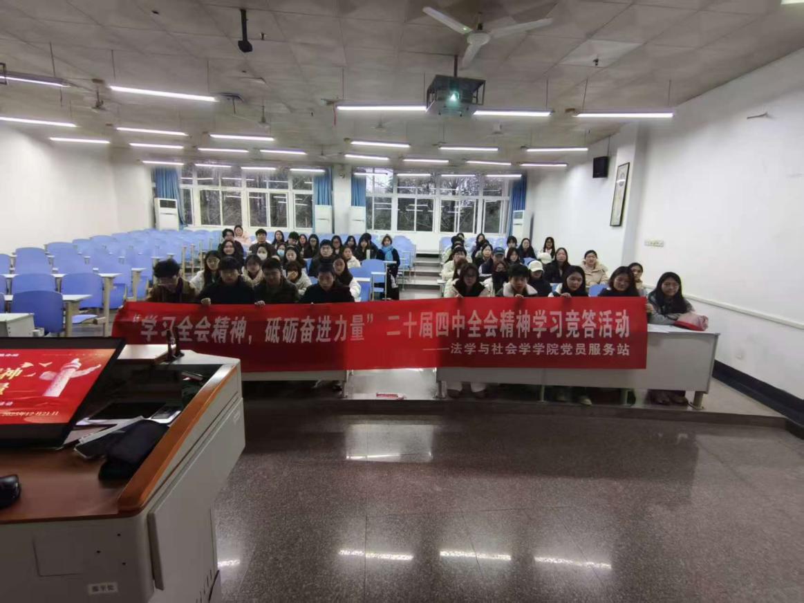 当前位置: 首页 >> 社区建设 >> 党员服务站 >> 正文 法学与社会学学院举办党的二十届四中全会精神学习竞答活动 时间:2025年12月22日 16:23 作者: 法学与社会学学院党员服务站 为深入学习贯彻党的二十届四中全会精神,引导广大同学准确把握“十五五”规划建议的战略部署,重庆工商大学法学与社会学学院党员服务站于12月21日在南岸校区慧智楼90208教室举办“学习全会精神,砥砺奋进力量”——党的二十届四中全会精神学习竞答活动。 本次活动中,同学们认真观看了三段关于二十届四中全会精神与“十五五”规划战略部署的专题学习视频。在随后的竞答环节,各小组积极参与,围绕客观题与主观题展开思考并踊跃回答。现场气氛专注而热烈,问答互动有效检验和巩固了同学们对前一阶段学习要义的理解,起到了强化理论武装、凝聚思想共识的积极作用。活动尾声,工作人员收集了活动意见反馈便利贴,并完成了各组成绩的统计。 本次活动通过集体学习与竞答的形式,提升了同学们的理论素养,凝聚了思想共识。未来,法学与社会学学院党员服务站将持续开展形式多样的理论学习与实践活动,引导广大同学将学习成果内化于心、外化于行,不断提升政治素养与综合能力,更好地发挥党员服务站的示范引领作用。 下一条:红色记忆映八秩 烽火故事颂英魂——会计学院红岩党员服务站举办抗日故事宣讲活动 【关闭】
