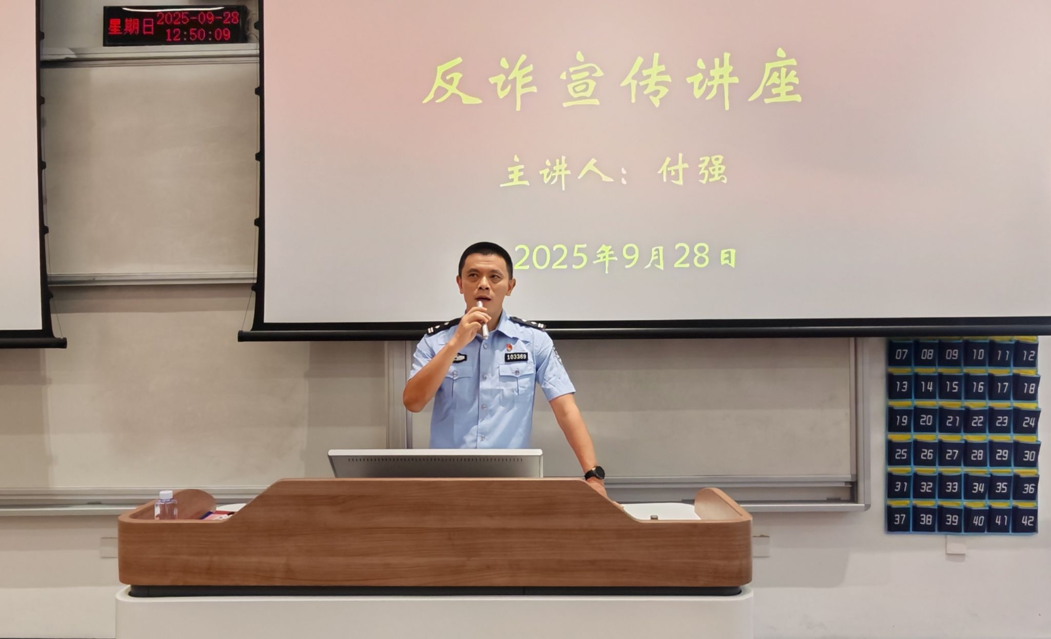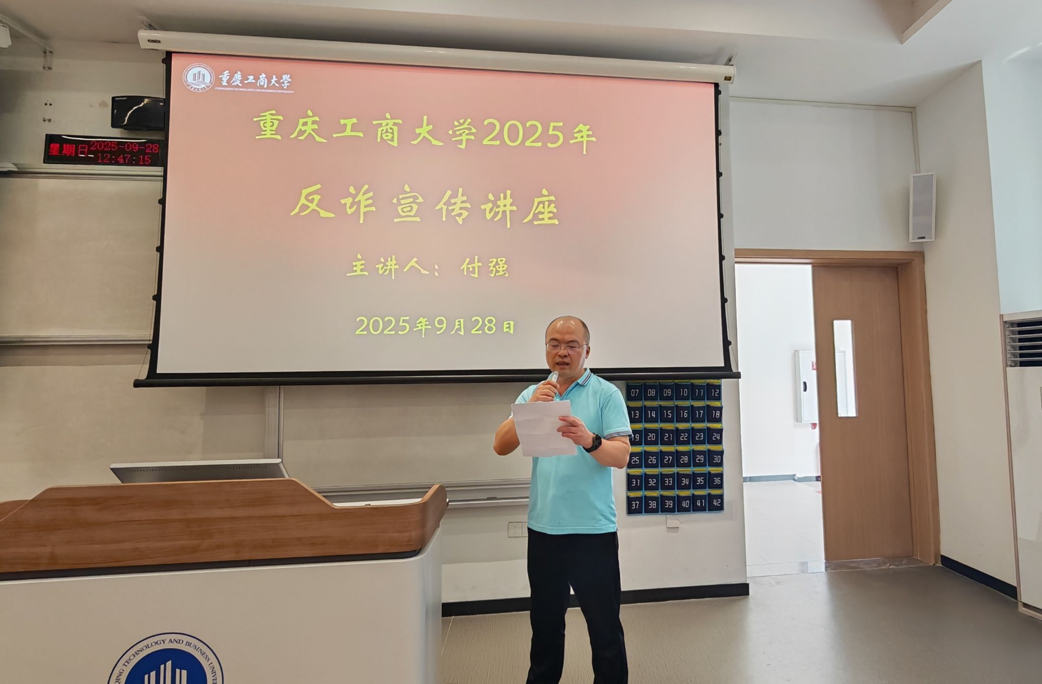 当前位置: 首页 >> 社区建设 >> 社区风采 >> 正文 学校举行反诈宣传专题讲座 时间:2025年09月29日 17:10 作者: 学生处 为进一步普及反诈防骗知识,提升师生反诈防骗的意识,有效遏制涉师涉生电信诈骗案件的发生,2025年9月28日中午,重庆工商大学反诈宣传专题讲座在茶园校区宏智楼111教室顺利举行。此次宣讲活动由党委学工部、党委保卫部、茶园校区管委会筹备组、峡口派出所联合主办,峡口派出所所长付强做主题宣讲。峡口派出所政委王新星,副所长向绍举、李晋、李明渝,社区民警孙豫川,专管民警罗健,保卫处沙云处长、邱胜祥副处长,茶园校区2025年入职辅导员及2025级各班主要班干部近200人参加了活动。宣讲会由学工部副部长杨徐勇主持。 付强从“两卡”犯罪、杀猪盘、屏幕共享等常见的电信诈骗方式切入,紧密结合近年来的案例特征及近期内发生的新型电诈类型,用通俗易懂的方式向在场人员剖析电信诈骗分子的作案手段,并详细讲解应对措施。付强着重提醒师生,在遭遇可疑情况时务必保持冷静,及时与警方取得联系,凡是96110和峡口镇派出所24小时值班电话必须接听。 此次活动有效提升了师生防范电信诈骗的意识与能力,为校警共创共建平安校园筑牢了坚实根基。 上一条:茶园校区学生社区开展宿管人员工作培训 下一条:筑牢消防安全墙,织密心理防护网 ——翠湖书院学生社区举行安全教育工作培训会 【关闭】