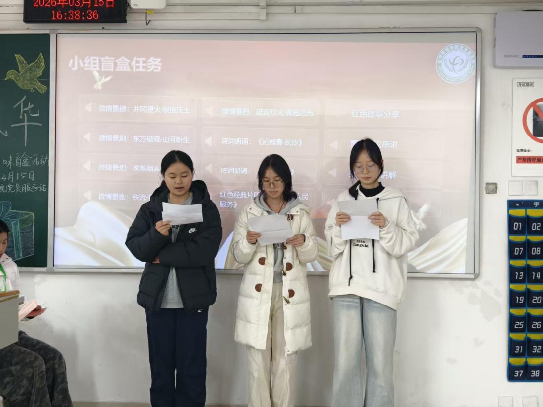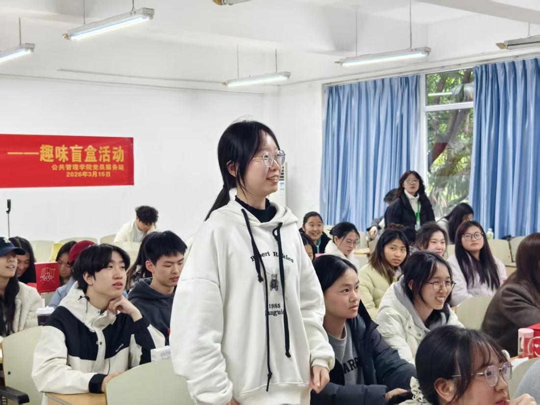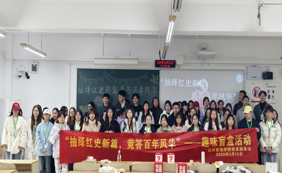 当前位置: 首页 >> 社区建设 >> 社区风采 >> 正文 “抽绎红史新篇,竞答百年风华”——公共管理学院共学社区党员服务站举办趣味盲盒活动 时间:2026年03月16日 12:16 作者: 公共管理学院 为引导青年在沉浸式互动与团队协作中深化红色认同、坚定理想信念,2026年3月15日,公共管理学院共学社区党员服务站在重庆工商大学南岸校区博智楼07204教室举办了“抽绎红史新篇,竞答百年风华”趣味盲盒活动,吸引了全院56名同学踊跃参与。本次活动意在带领青年走进丰满鲜活的英雄人物故事,在互动中传承红色基因、汲取精神力量。 活动伊始,同学们根据盲盒内的任务单进入筹备环节,并通过分工讨论、练习磨合来推进任务。随后,五组成员依次展示盲盒任务。他们朗诵《沁园春·雪》中展现的豪迈气概,演绎“井冈星火”“东方破晓”以及“改革浪潮”中国家历经新生奠基与改革图新的复兴征程,朗读《为人民服务》中“全心全意为人民服务”的宗旨。这不仅让英烈的形象变得血肉丰满,更表达了青年对红色文化的时代诠释。紧接着,在党史知识竞答环节中,同学们踊跃举手,表现了敏捷的思维与丰富的知识储备,同时彰显了青年对党史学习的热忱。活动尾声,主持人深情寄语,激励同学们不忘初心、砥砺前行,在传承中接续奋斗。 本次活动依托“共学社区·铸魂工程”,以盲盒为载体,让同学们在轻松愉快的氛围中重温红色记忆、感悟初心力量。未来,公共管理学院共学社区党员服务站将持续探索活动的新路径,以更贴近青年需求的形式推进党史学习教育走深走实,让红色基因在新时代得到传承和发扬。 上一条:安全无小事,竞赛练真功——文学与新闻学院北23楼管会开展寝室安全知识竞赛 下一条:体育学院依托“一站式”学生社区持续开展教职工子女公益培训 【关闭】