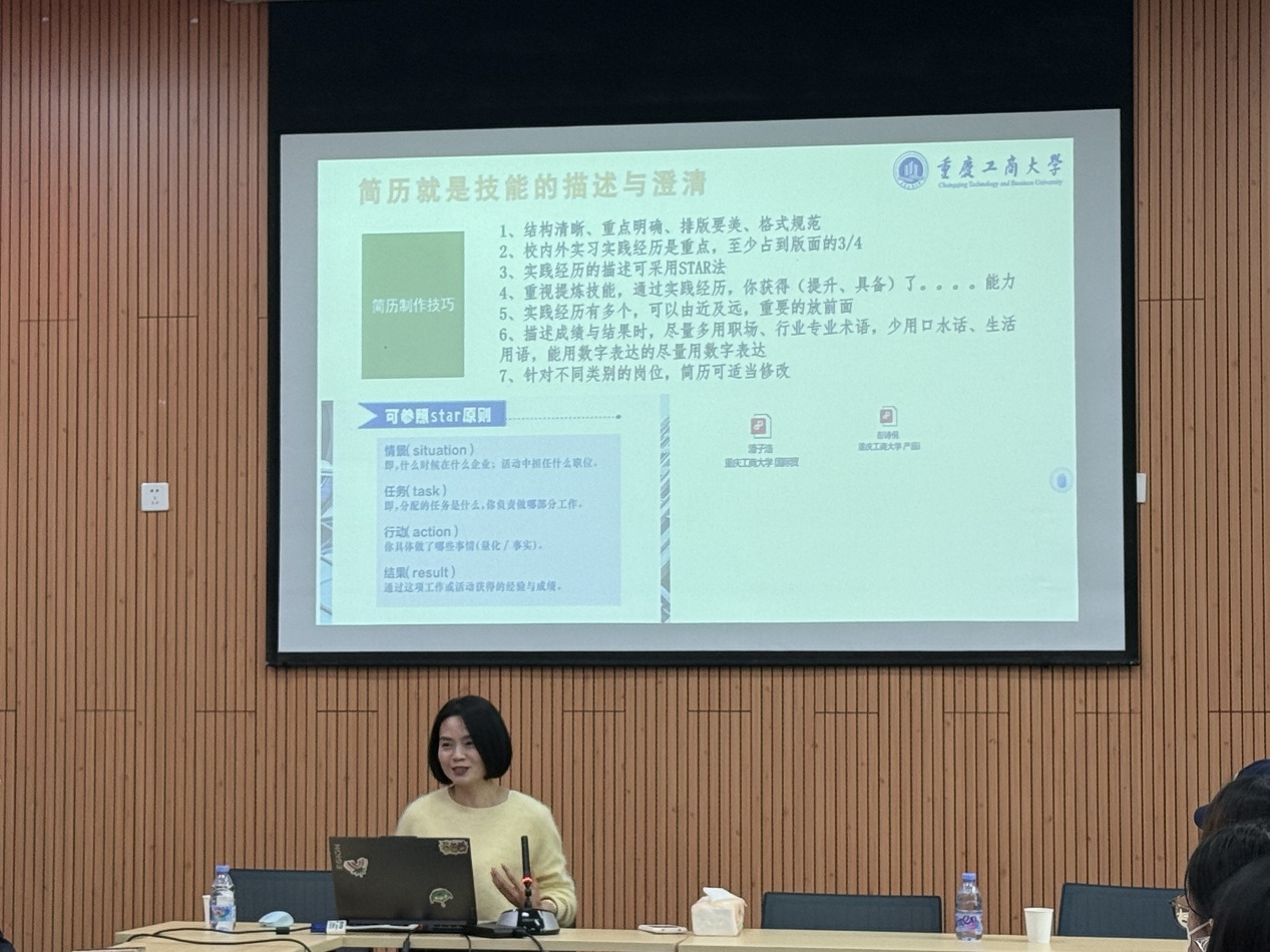 当前位置: 首页 >> 社区建设 >> 社区风采 >> 正文 “破‘简’而出,历‘阶’而上”——公共管理学院共学社区开展第22期“共学社区接待日” 时间:2026年03月28日 14:50 作者: 公共管理学院 3月27日,公共管理学院共学社区砥砺(DL)生涯教育工作室在图书馆会议中心二会议室开展第22期“共学社区接待日”。本期接待人公共管理学院分团委书记邓丽,面向学院大三、大四学生开展简历制作指导,共有20名同学参与。 活动现场,邓丽以“简历为什么重要”开篇,结合企业真实招聘场景讲解,通过模拟HR快速筛选环节,让同学们直观了解到简历作为求职第一敲门砖的重要性,认识到简历排版、完整性与内容质量直接决定能否进入后续招聘环节。紧接着,邓丽系统梳理了简历的三大组成部分,明确个人信息、求职意向等基础板块需简洁明了,实践经历、职业技能等核心板块需重点呈现,并详细拆解了各类技能的呈现方式,强调可迁移技能需用具体事例佐证。最后,邓丽围绕简历打磨给出实操技巧,强调简历需结构清晰、排版规范,实践经历可采用STAR法则,以数据量化成果并灵活适配不同岗位。 本期“共学社区接待日”内容实用、贴近实际,有效针对同学们简历撰写中的痛点进行答疑解惑,是共学・桃李工程中师生下沉社区、面对面开展职业规划指导的生动实践,充分发挥了共学社区育人服务功能,有力推动了学习成长型社区建设。未来,学院共学社区将持续以五大育人工程为抓手,常态化开展生涯规划、求职指导类活动,助力学子提升就业竞争力、实现全面发展。 上一条:重庆工商大学匠馨社区举办“巧笔绘新,寓见匠心”笔记评选活动 下一条:重庆工商大学会计学院:一站式社区赋能朋辈帮扶,破解新生高数学习难题 【关闭】